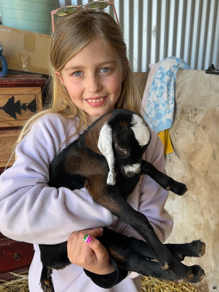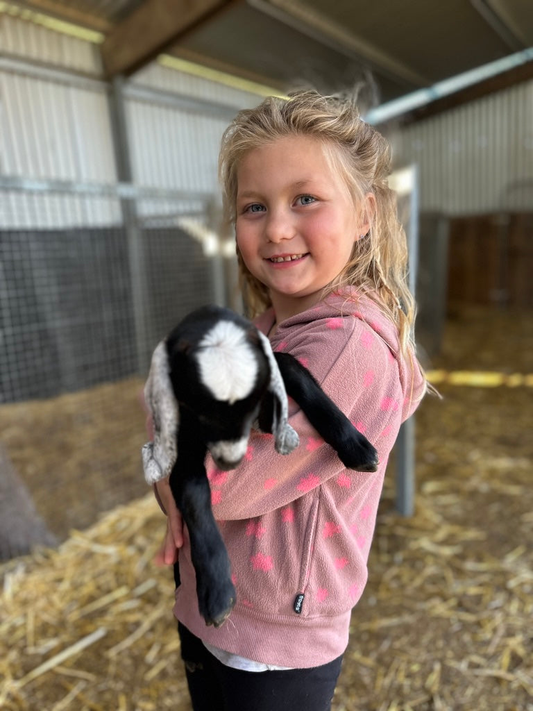 The highlight for our girls was meeting the baby goats — literally minutes old when we arrived! They got to hold and cuddle these tiny bundles of fluff while watching their mothers care for them. It was incredible to see the babies grow stronger during our two-night stay, and the girls were fascinated by every little moment of farm life.