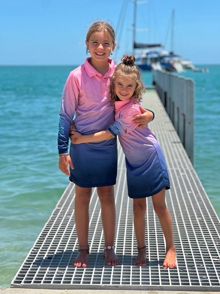 Pictured: Miss P wears a size 8 and is 7 years old here, she could wear a size 8 as shown in our leopard product which sits above the knee, she moved up to a size 10 on her 8th Birthday.